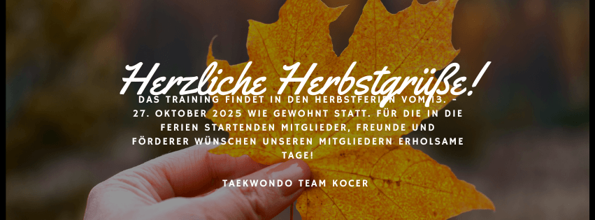 Das Training findet in den Herbstferien vom 13. – 27. Oktober 2025 wie gewohnt statt. Für die in die Ferien startenden Mitglieder, Freunde und Förderer wünschen unseren Mitgliedern erholsame Tage!
